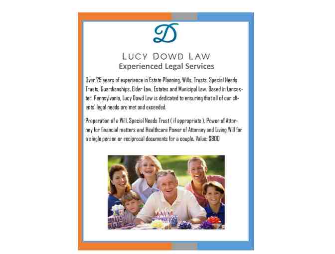 Over 25 years of experience in Estate Planning, Wills, Trusts, Special Needs Trusts, Guardianships, Elder Law, Estates and Municipal Law. Based in Lancaster, Pennsylvania, Lucy Dowd Law is dedicated to ensuring that all of her clients' legal needs are met and exceeded.