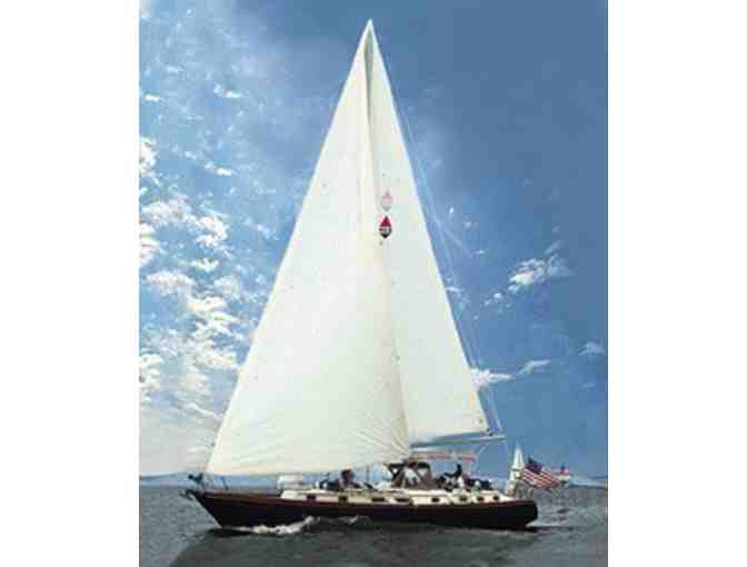 Enjoy a day of sailing the Chesapeake Bay aboard the 46’ Bristol Sloop “No Questions.”