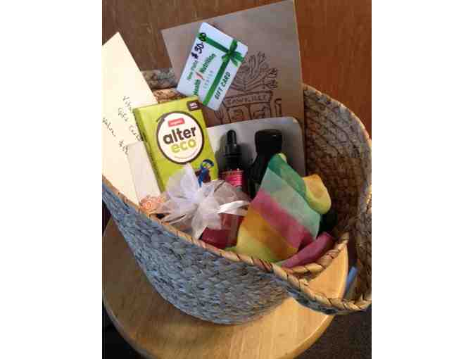 This sweet basket includes gift certificates to Sawkille ($100), Dreamkeeper Botanicals ($60), Health & Nutrition ($30) and Vitality Yoga ($50).