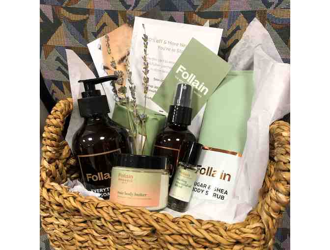 Together with clients and product makers, Follain is taking a stand against toxins in personal care, refusing to settle for anything but the safest, most effective products. Collection of Follain's exclusive signature line: Everybody Bar Soap; Everything Liquid Soap in refillable pump bottle; Sugar & Shea Body Scrub to simultaneously buff & moisturize skin, in a mess-free tube; Instant Glow Body Oil fast-absorbing dry body oil in fine mist spray form; Rose Body Butter in partnership with Organic Bath Co. to increase cell turnover, and deeply hydrate; Cooling Essential Oil Blend to melt away stress with 100 percent pure organic essential oils of Peppermint, Eucalyptus, Lavender, &Cajeput. Join the movement & swipe this beautiful collection for a cleaner personal care routine today!