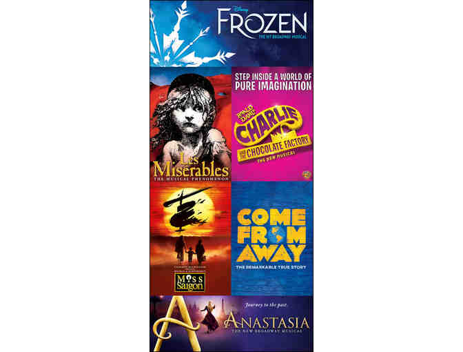 Two mid-orchestra seats to a Celebrity Attractions show of the buyer's choice from the '19-'20 regular season at the Tulsa PAC. The show options include: Disney's Frozen, Les Miserables, Charlie and the Chocolate Factory, Miss Saigon, Come From Away or Anastasia.
