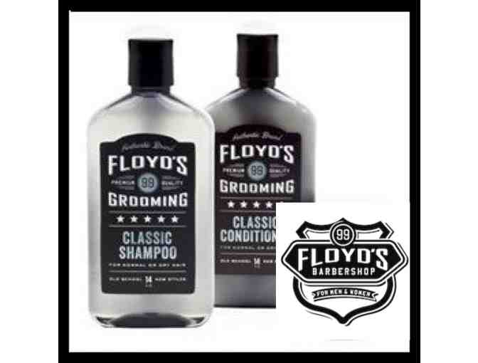 This package contains a $25 Gift Card for Floyd's Barbershop along with one set of Floyd's Grooming Classic Shampoo & Conditioner for Normal or Dry Hair (one 14 oz bottle of each).