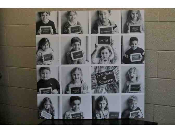 The future plans of the first graders are captured in a beautiful set of black and white student portraits titled, "When I Grow Up...," and displayed on a 30" x 30" ready to hang gallery canvas.