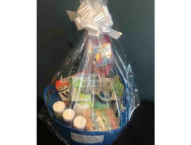 Everything you need to enjoy a fun afternoon outdoors! This basket includes; 2 insulated water bottles, neoprene lunch bag, scoop-n-throw game, sidewalk chalk, bubbles and fruit snacks.