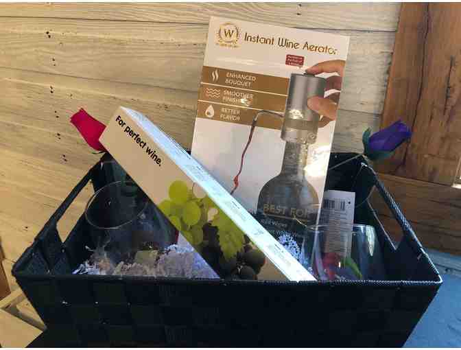 1 Corkcicle (wine chiller), Instant Wine Aerator, 2 stemless wine glasses, and wine bottle stopper. The perfect gift set for the wine lover in your life -- especially if that's you! Pair it with a draw or three from our Wine Pull.