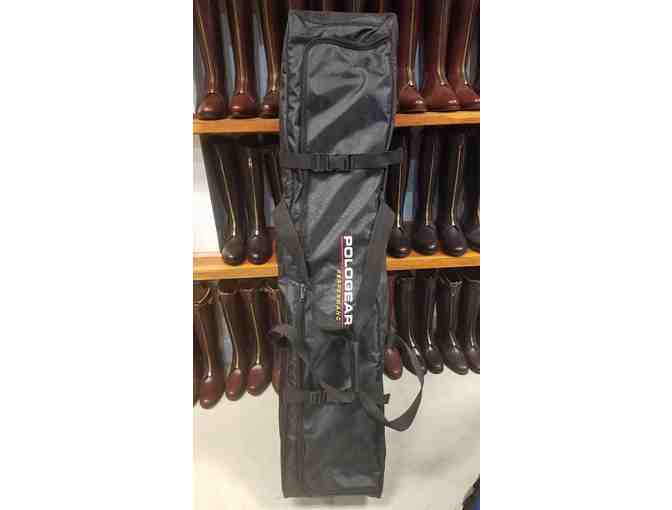 A Newly designed XL Polo Gear Rolling Mallet Bag with reinforced handles, dual zippe and a heavy duty design valued at $150.