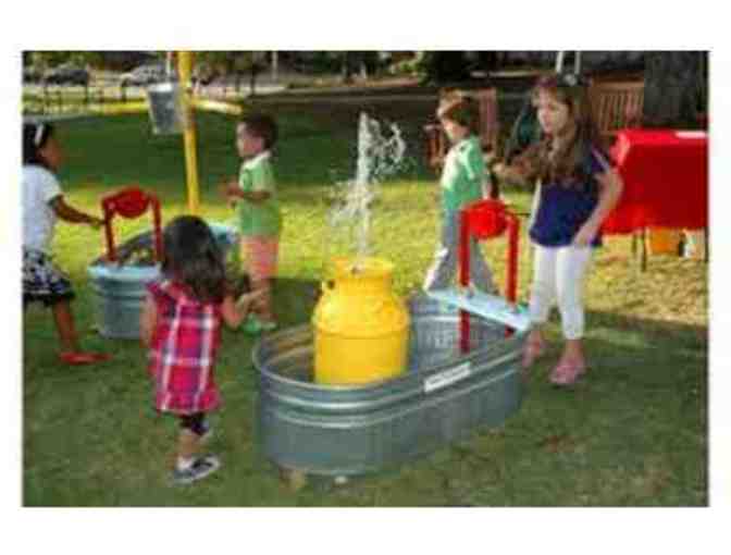 Children ages 3-8 will enjoy pumping water to make a wheel turn, spray water from a fountain 20 feet into the air, see what happens when water fills a tipping bucket, race ducks (or each other!) and use funnels to explore with water.