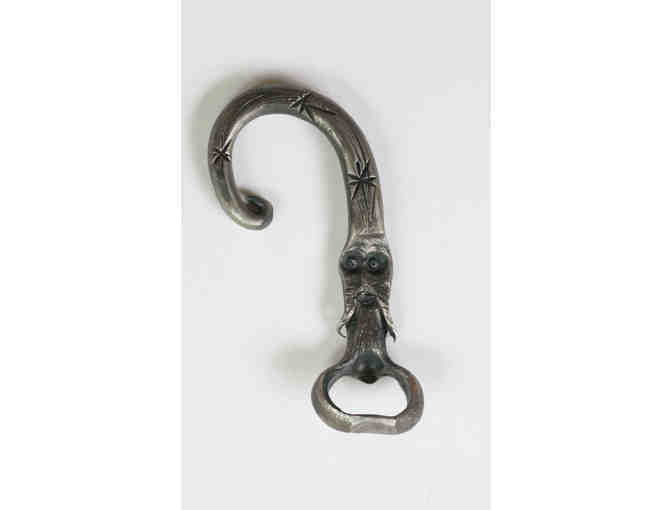 Waiting for the right time to open that bottle? Made from 1/2" square by 5" long mild steel and lovingly plied into shape and decorated.
