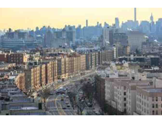 This walk will be approximately 90 minutes. Tour will start at Bronx Museum of the Arts, 1040, Grand Concourse, located on the northeast corner of the Grand Concourse at East 165th Street. Group will meet in the north building's lobby. The winner may bring up to 20 guests.