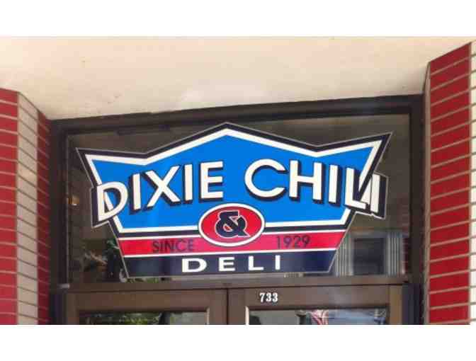 2 cases of Dixie Chili (12 Cans), apron, t-shirt, and visor from Dixie Chili. Enjoy this Cincinnati tradition at home!