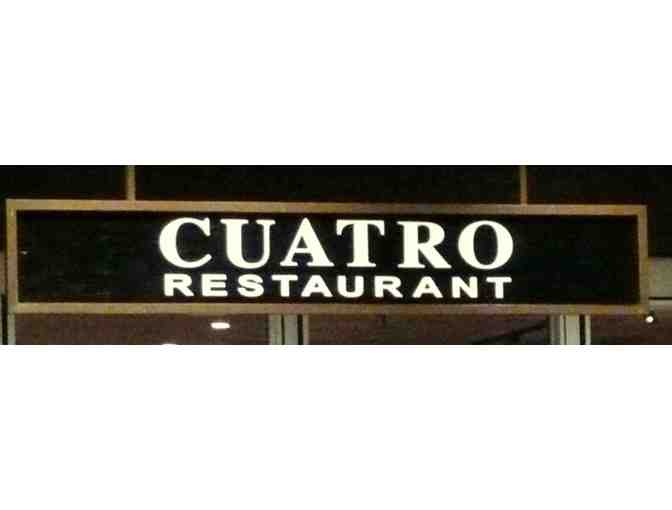 Start with a salad, the award winning Spicy Tuna Nachos, or choose from our several other starters. Our delectable Entrees include: Fresh Hawaiian Fish of the Day, with your choice of four different preparations; Roasted Chicken Breast stuffed with green chilies, ham, and pepper jack cheese; Marinated Pork..and many more.Cuatro Restaurant is a place for everyone. It is a restaurant that is fun for tourists, a good value for families, and a great place for locals. Off the beach or out of the hotel room, it doesn’t really matter. Come in and have a great time!Cuatro Restaurant was Voted Best New Restaurant in 2009 by the Maui News.