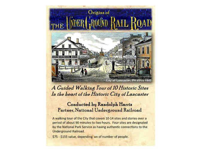 A walking tour of Lancaster City’s 10 historic sites of the Underground Rail Road. The tour covers 10-14 sites and stories over a period of about 90 minutes to two hours. Four sites are designated by the National Park Service as having authentic connections to the Underground Railroad.