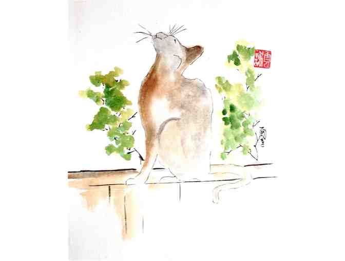 The artist has been a practitioner of Oriental brush painting for 15 years, and presently teaches at the Worcester Art Museum. She also works in wood block printing, in acrylics and watercolor. She is the coordinator for the Silk Road Art Guild, a group of Central Massachusetts artists who love Asian brush painting and are committed to sharing that interest with the people of the area. The artist notes: "My interest in the creative arts has been life long, but only since 1990 have I been seriously working and creating works of art. The longer I work in the studio, the more convinced I am that the creative process is essential for a life of fulfillment. The art of brush painting itself is a meditative process in which time disappears, and one can focus on the present moment without concern for what comes next or what has come before. The mystery of the stroke reveals the inspiration of the painter. The essence of Chinese brush painting lives on in many cultures. The "qi" of a painting can be achieved when the painter is in a frame of mind which frees the heart to dance for joy."