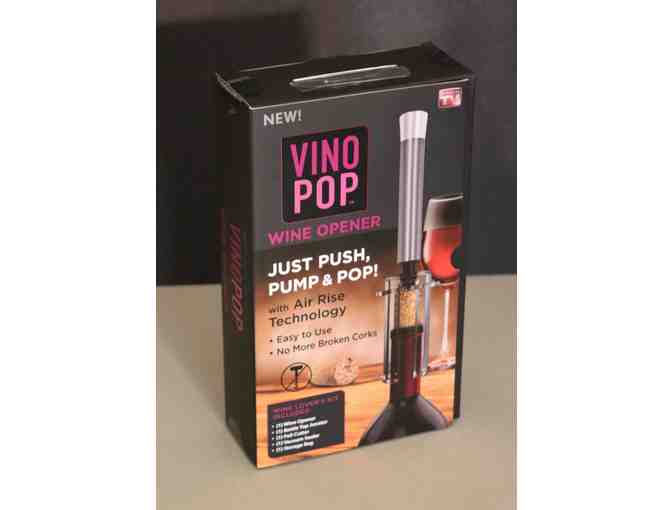 Up for auction is this Vino Pop Wine Opener with Air Rise Technology - has bottle top aerator, vacuum sealer, storage bag and twist foil cutter.