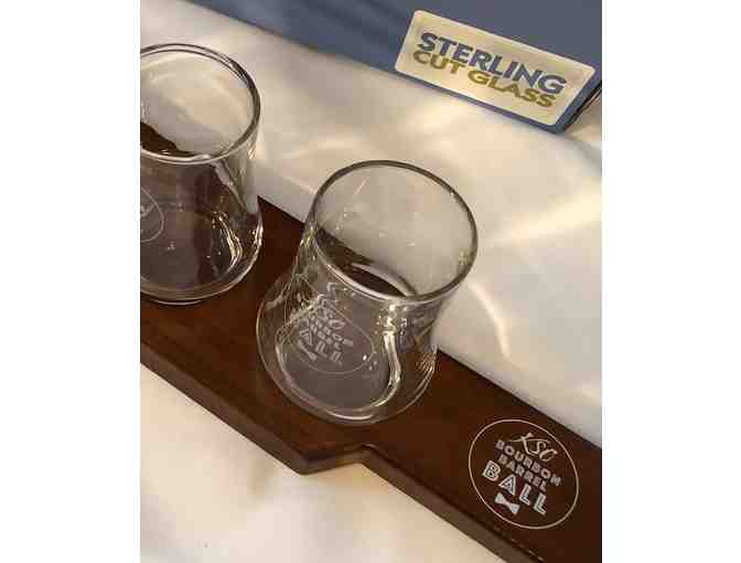 Your friends will love you when you break out the Bourbon Barrel Ball engraved Bourbon Tasting Set from Sterling Cut Glass. Serve up a flight of your favorite Bourbons with four (4) KSO Bourbon Barrel Ball 5.5 oz glasses with a tasting board. Value $70