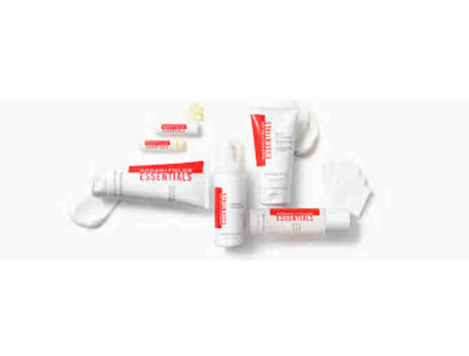A gift basket of Rodan + Fields Essentials everday dermatologic skincare products.