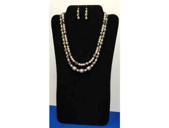 2 Strand Grey and White Freshwater Pearl Necklace and Earrings