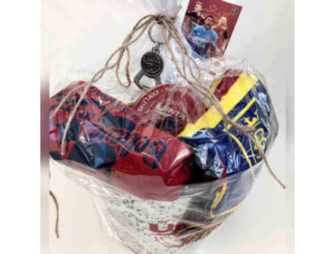 2 Tickets (May 4 Game) + Official RSL Scarf, Uintah Brewing T-Shirt, Glasses, Can Openers & Coasters, all in a Uintah Brewing Ice Bucket