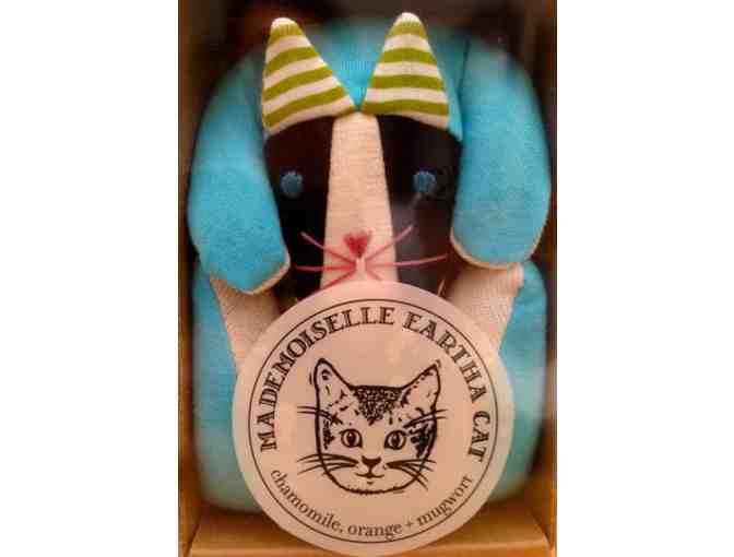 Eartha is filled with chamomile, orange and mugwort. Chamomile is a yellow daisy-like flower with a fruity aroma. As a tea it helps with insomnia and nervous tension. Orange is an antiseptic aromatic. Mugwort grows wild in Europe, Asia and North and South America. In Chinese medicine, mugwort is used in moxas. Sleeping on mugwort is thought by some to reveal dreams of the future.