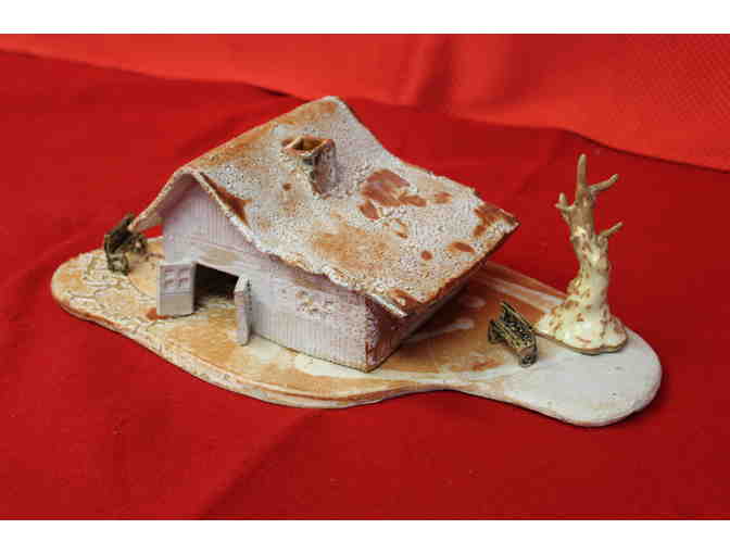 A handmade, farm house clay mosquito coil cover. The coil can be inserted into the center of the cover and lit to repel the insects via a powerful incense.