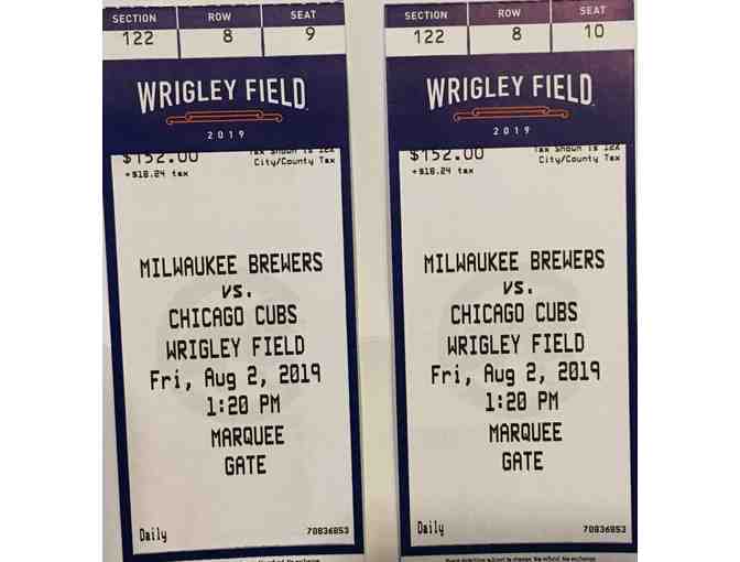Come out to watch the Cubs beat our rivalries- the Milwaukee Brewers. Two tickets for Friday, August 2nd 1:20 p.m. Section 122 Row 8 Seat 9 & 10. Arrive early and receive Cubs Pajama Pants to the first 10,000 fans!