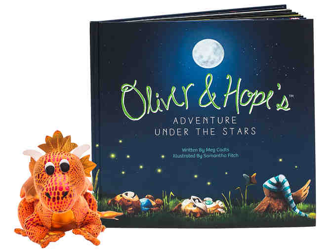 Hugo the dragon joined the fun in the 2nd book of the Oliver & Hope series, “Oliver & Hope’s Adventure under the Stars”. Hugo flies, breathes fire and has a colorful imagination. He believes that the bigger a child’s dream, the more fun will take flight. Hugo’s plush, squeezable body sparkles in a magical way, and his shimmering wings are ready for action. Hugo is so full of love; he wears his heart on the tip of his tail.