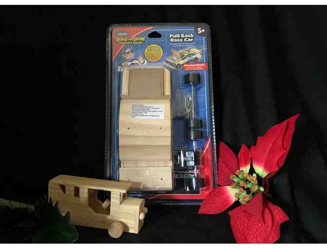 Build & Grow, Pull Back Race Car and a bonus truck. The kit and bonus truck are made of solid wood and provide a fun time together for parent and child.