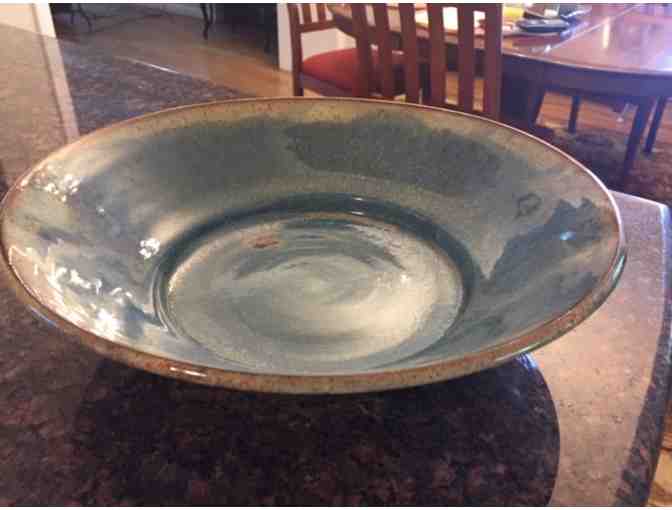 This stunning handmade ceramic serving bowl is the perfect addition to any tabletop. Approx. 11 inches in diameter, it was made and donated by Greenwood grandparent Cathy Grubman.