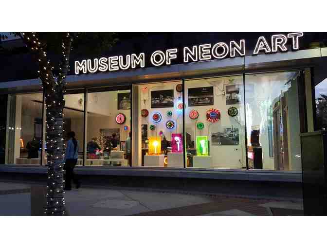 Enjoy some unique art with admission for eight people to the Museum of Neon Art in Glendale. The Museum of Neon Art encourages learning, curiosity and expression through the preservation, collection and interpretation of neon, electric and kinetic art. Neon is a gateway between scientific principles and artistic expression. Neon illumination integrates electrical technology, creative design, and fundamental concepts of physics and chemistry. The Museum of Neon Art is the only museum in the world devoted exclusively to art in electric media, exhibiting electric and kinetic fine art, and outstanding examples of historic neon signs, for over three decades.