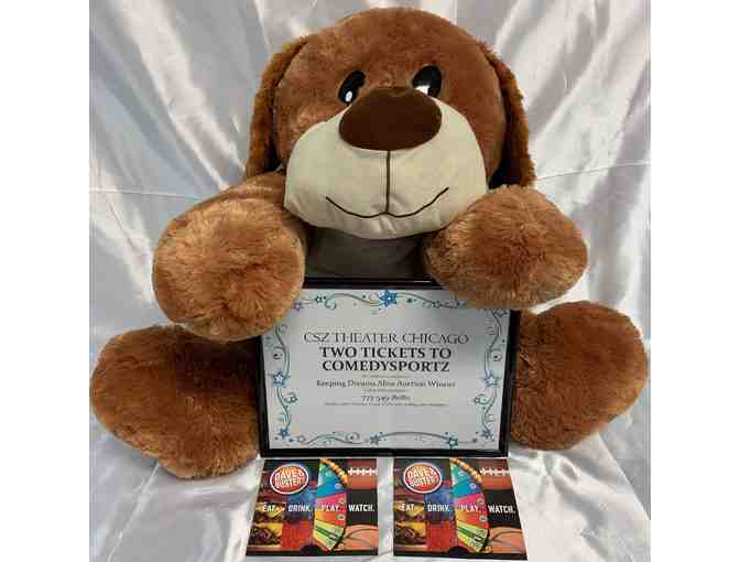 2 tickets for ComedySportz Family time matches at CSz Theater Chicago; 2 - $30 power play cards at Dave and Busters and "dreamer" the dog