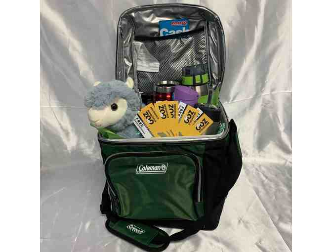 6 Brookfield Zoo general admission passes; 16oz. stainless steel FUNtainer bottle w/spout (purple); 12oz. stainless steel FUNtainer bottle (lime); 18oz. stainless steel vacuum insulated cold cup w/straw; 16oz. stainless steel king travel mug (cranberry); 24oz. stainless steel Direct Drink bottle; $25 Costco gift card; Llama stuffed animal