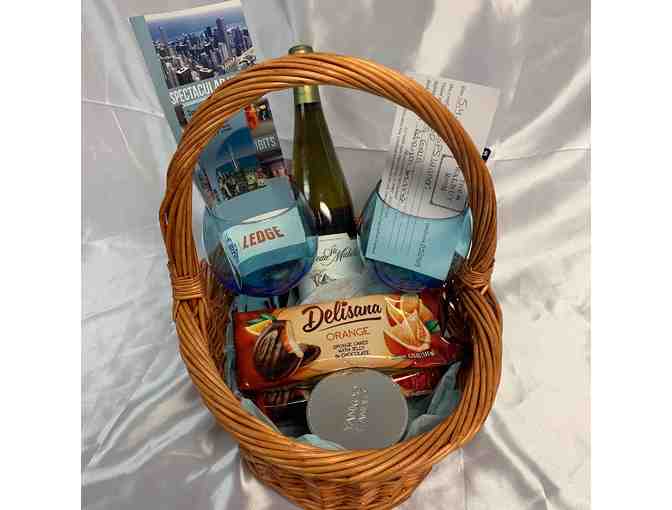 $50 Walnut Room gift card; 4 admission passes to the Chicago Skydeck; Bottle of wine; 2 wine glasses; Wine accessories