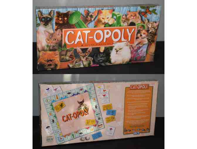 Up for auction is this board game of Cat-Opoly - the board is made up of the world's most popular and exotic cats - for up to 2 to 5 players ages 8 and up.
