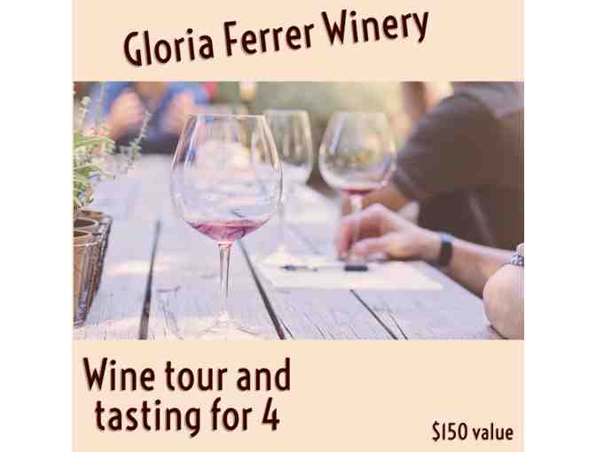 Gloria Ferrer Caves and Vineyards are pleased to invite you and 3 of your friends to our sparkling wine house located in the beautiful rolling hills of the Sonoma Carneros region of Northern CA. Enjoy breathtaking views from our panoramic Vista Terrace overlooking our estate vineyards to Gloria Ferrer's contemporary tasting room or enjoy the outdoor vista terrace. Also, 4 acrylic 30th anniversary Gloria Ferrer glasses. Gloria’s Flute was designed by our namesake, Gloria Ferrer who collaborated with Sonoma artist, Alex Leader for the winery’s 30th anniversary. Using inspiration from her renowned flute collection of more than 2,000 pieces, Gloria’s Flute is the ideal blend of antique and modern. Combining the long, delicate neck of a flute with a coupe inspired bowl, her design allows the bubbles to travel through the wine while also enhancing the aromatics of the sparkling wine. Call to schedule