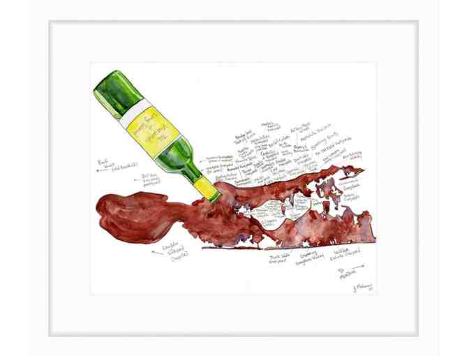 - Framed watercolor, "Vineyards of Long Island - Merlot Version," by Artist Jackie Maloney. 16" x 20" custom white frame with mat Value: $285