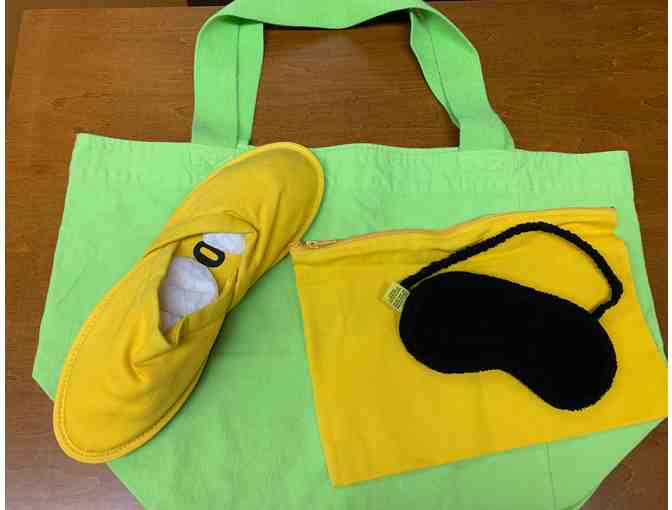 Travel Set includes: Eye Mask, Big Tote, Zip Pouch, Slippers.