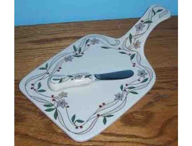Make your holiday table look merrier this year with this beautifully-patterned cheese board from Lenox, with a frosted-berries theme. Spreader is also included.