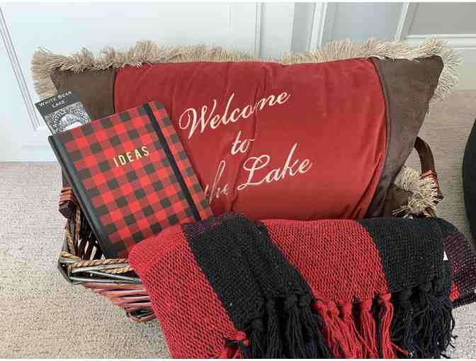 Includes "Welcome to the Lake" Pillow, Red & Black plaid blanket and journal.