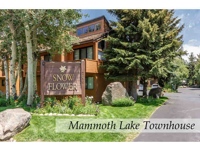 Enjoy four nights in Mammoth for up to 8 people. This lovely Snowflower townhouse offers a quiet escape with a feeling of total seclusion just steps from the free shuttle to Mammoth Ski Area and within walking distance of shopping, dining, golf and family-friendly entertainment, including a theater and bowling alley.