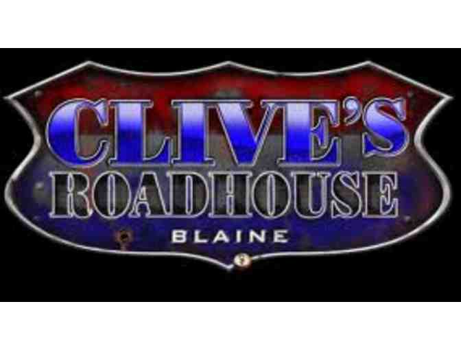 Redeemable at Clive's Roadhouse locations in Champlin, Blaine, Burnsville & Rogers.