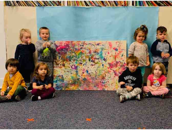The dropcloth under your child's art projects from the whole year. Layers of paint and glitter and glue...Perfection! Children from both groups (MWF & TTH) created this canvas.