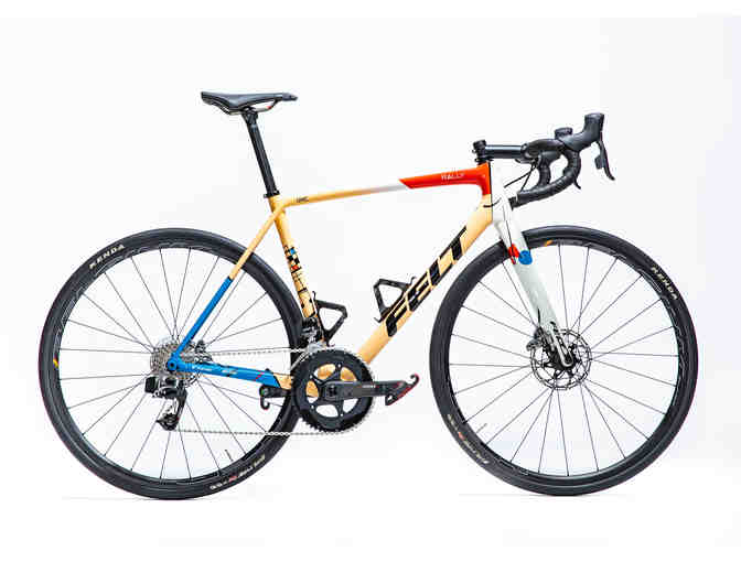 This  bike is in the fleet of one-of-a-kind Felt FR Disc bicycles that will be raced by Rally UHC Cycling at the 2019 Amgen Tour of California and now auctioned to benefit the UHCCF. Six brave young UHCCF grant recipients were surveyed to provide inspiration for each bike’s novel identity. See the bikes racing live in California on NBC Sports Network or via the Tour Tracker, and don’t miss your chance to own one of these exceptional, hand-painted Felt FR Disc race bicycles!