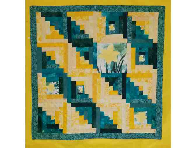 This beautiful quilt will fill the room with the colors and feeling of Spring. Measuring 30x30 it is a perfect smaller size for a table top, a baby gift or a beautiful decoration.