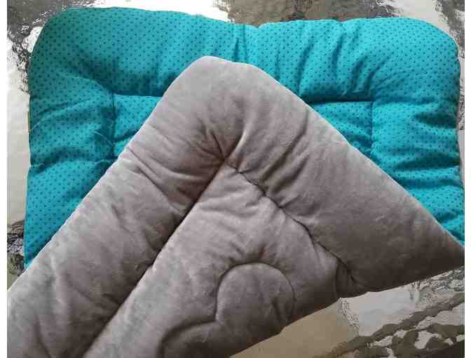 This padded bed by JoicyCo with a quilted bone is the center is beautiful as well as functional. Measuring approx 24" x 18", it is great for the small to medium pet in your life.