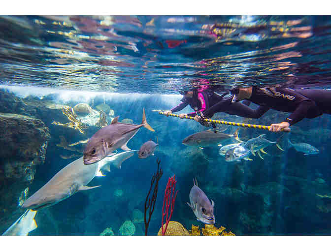 A snorkel-like experience for four (4) guests alongside more than 1,000 fish including stingrays, barracudas, a sea turtle, and sand tiger sharks! This snorkel-likeexperience gives guests (age9+) a uniqueaquatic adventure. Scubacertification not required!This experience is recorded using small action cameras. Guests will receive a copy of this footage after the experience.General admission to the Aquarium is included with the purchase of this experience.