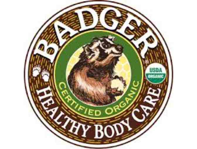 W.S. Badger Company Inc. certified-organic two pack of balms, including Sore Muscle Rub (cayenne and ginger) and Sleep Balm (lavender and bergamot) and a three pack of lip balms –Poetic Pomegranate, Vanilla Bean and Creamy Cocoa.