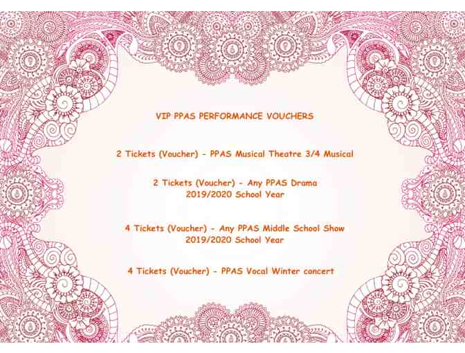 Vouchers to 'PPAS' (Perfessional Performing Arts School) Shows during the 2019-2020 school year.