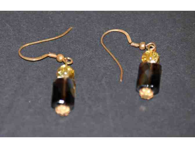 Up for auction is this pair of Gold Plated Sterling Earrings with Genuine Stones and Glass Beads, measuring 1-5/8 inches long - handmade in Pennsylvania
