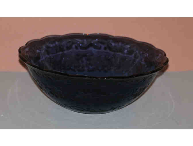 Up for auction is this Princess House Blue Crystal Bowl in the “Fantasia” (poinsettia) pattern, measuring 11 inches in diameter.