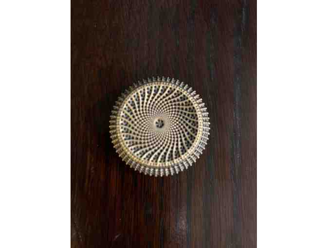 This beautiful and unique fidget spinner was designed by Lucas Lester’s dad, Brandon Lester. The spinner was sculpted in the computer program ZBrush, then 3D printed, and cast in bronze. Brandon then added a patina finish.